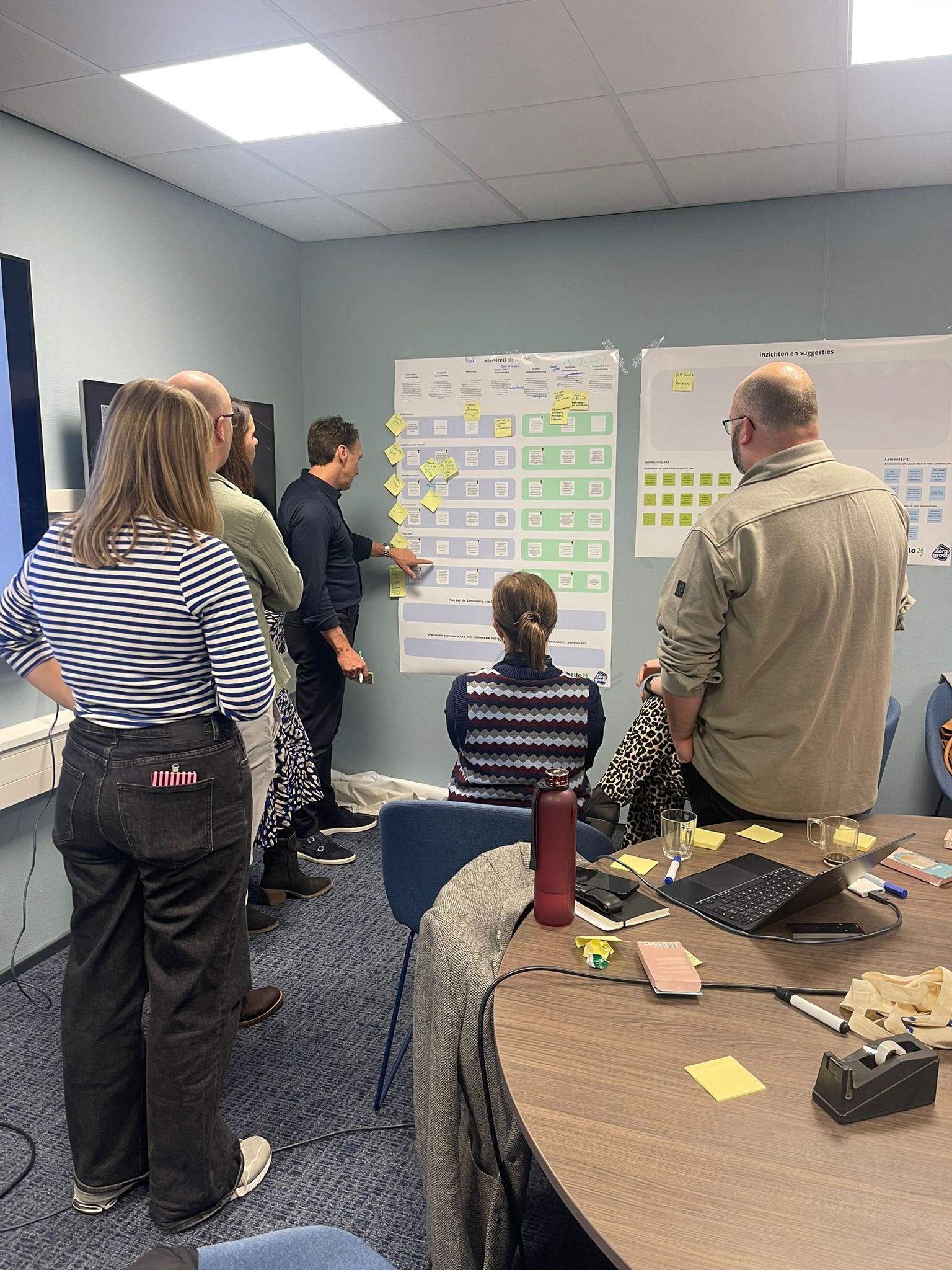 Tijdens de Deep Dive is het de bedoeling dat je met elkaar in een soort scrum-achtige setting aan de slag gaat: plak post-its, stel vragen en breng structuur aan in alle ideeën en gedachten die er leven.