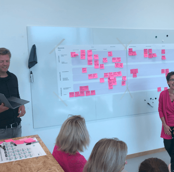 Samenzorgen laat zich niet afdwingen in bestaande structuren; het vraagt om een manier van werken die vertrekt vanuit de praktijk. Daarom is deze aanpak is gebaseerd op Service Design: een manier van werken waarin je processen ontwerpt vanuit de de praktijk, en het wensbeeld: hoe ziet Samenzorgen eruit als het goed werkt in jullie organisatie? Pas daarna ga je terugredeneren naar stappen, rollen en afspraken.